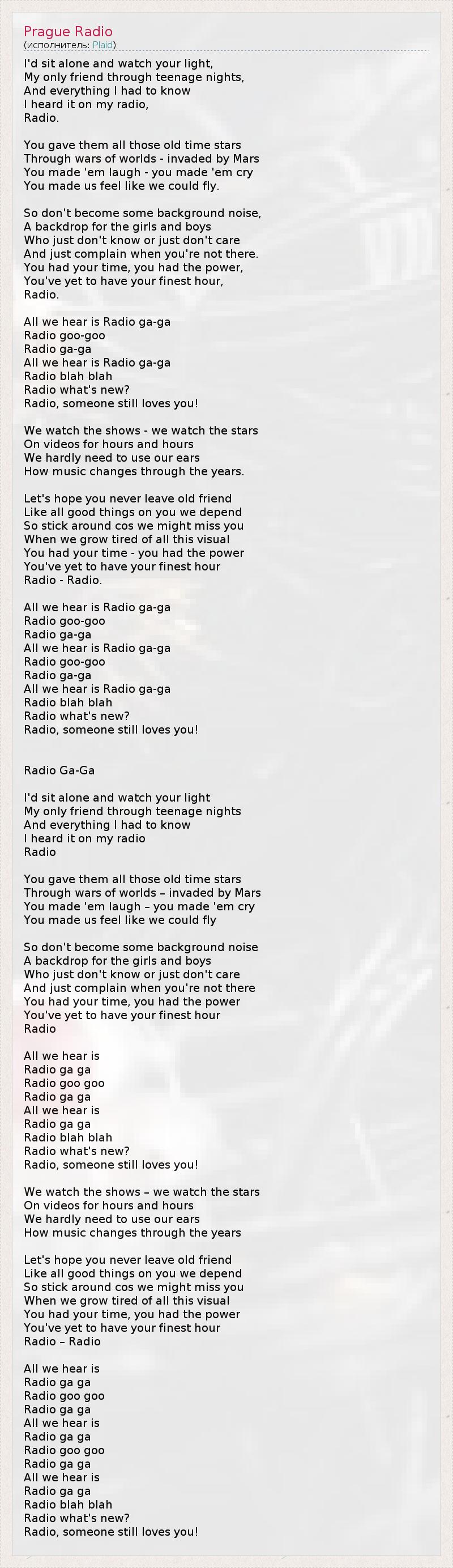 А как ты думаешь, о чем песня "Prague Radio" ?