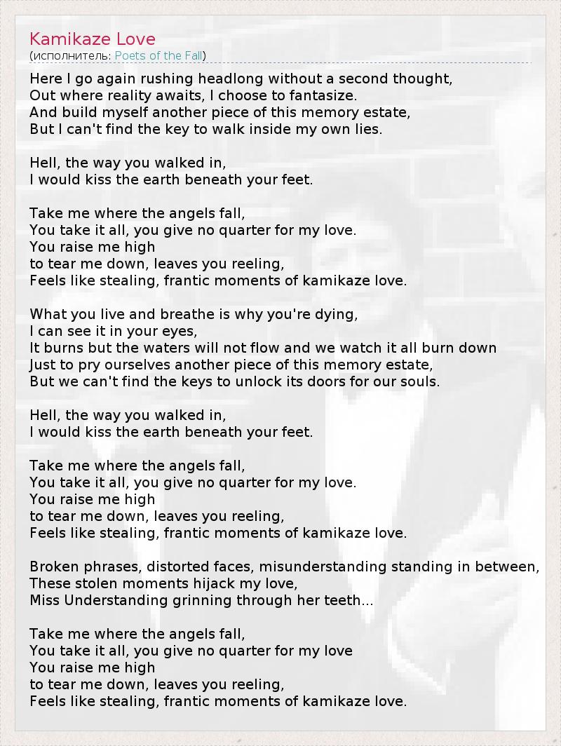 А как ты думаешь, о чем песня "Kamikaze Love" ?