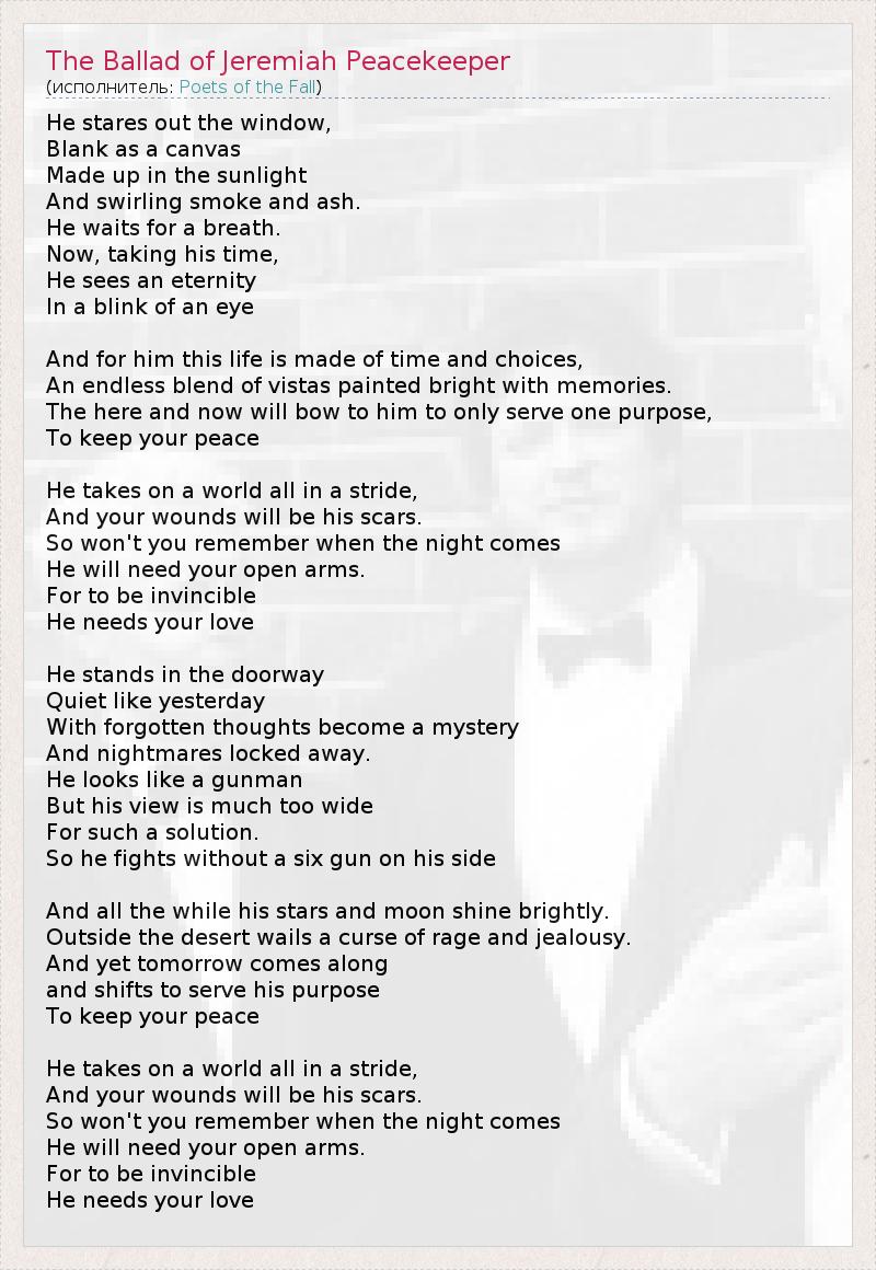 А как ты думаешь, о чем песня "The Ballad of Jeremiah Peacekeeper" ?