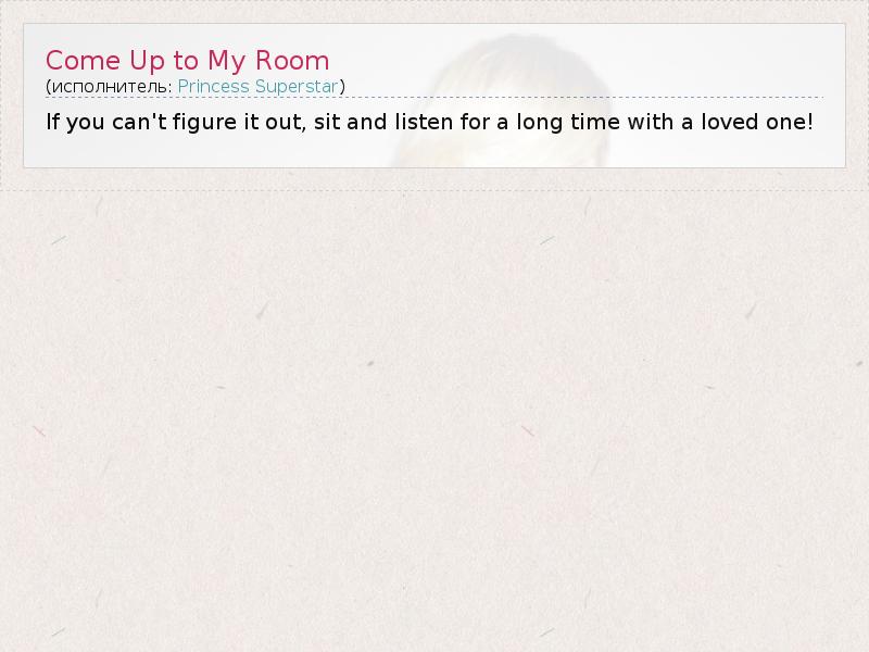 А как ты думаешь, о чем песня "Come Up to My Room" ?
