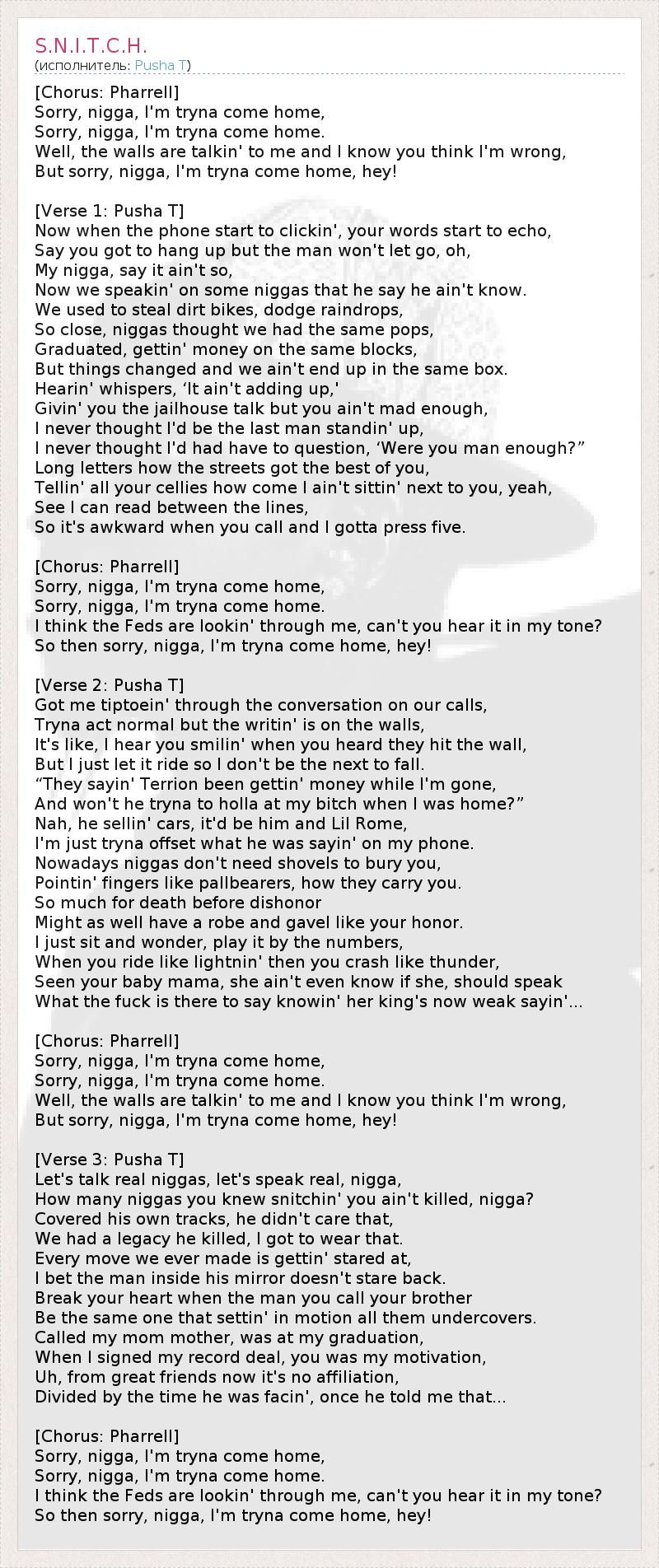 А как ты думаешь, о чем песня "S.N.I.T.C.H." ?