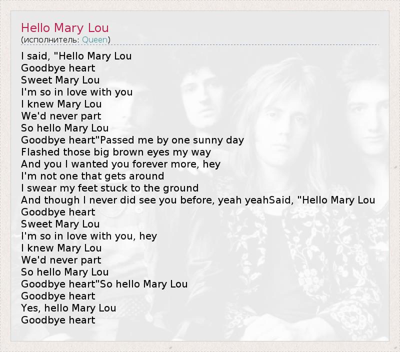 And though I never did see you before, yeah yeahSaid, "Hello Mary Lou