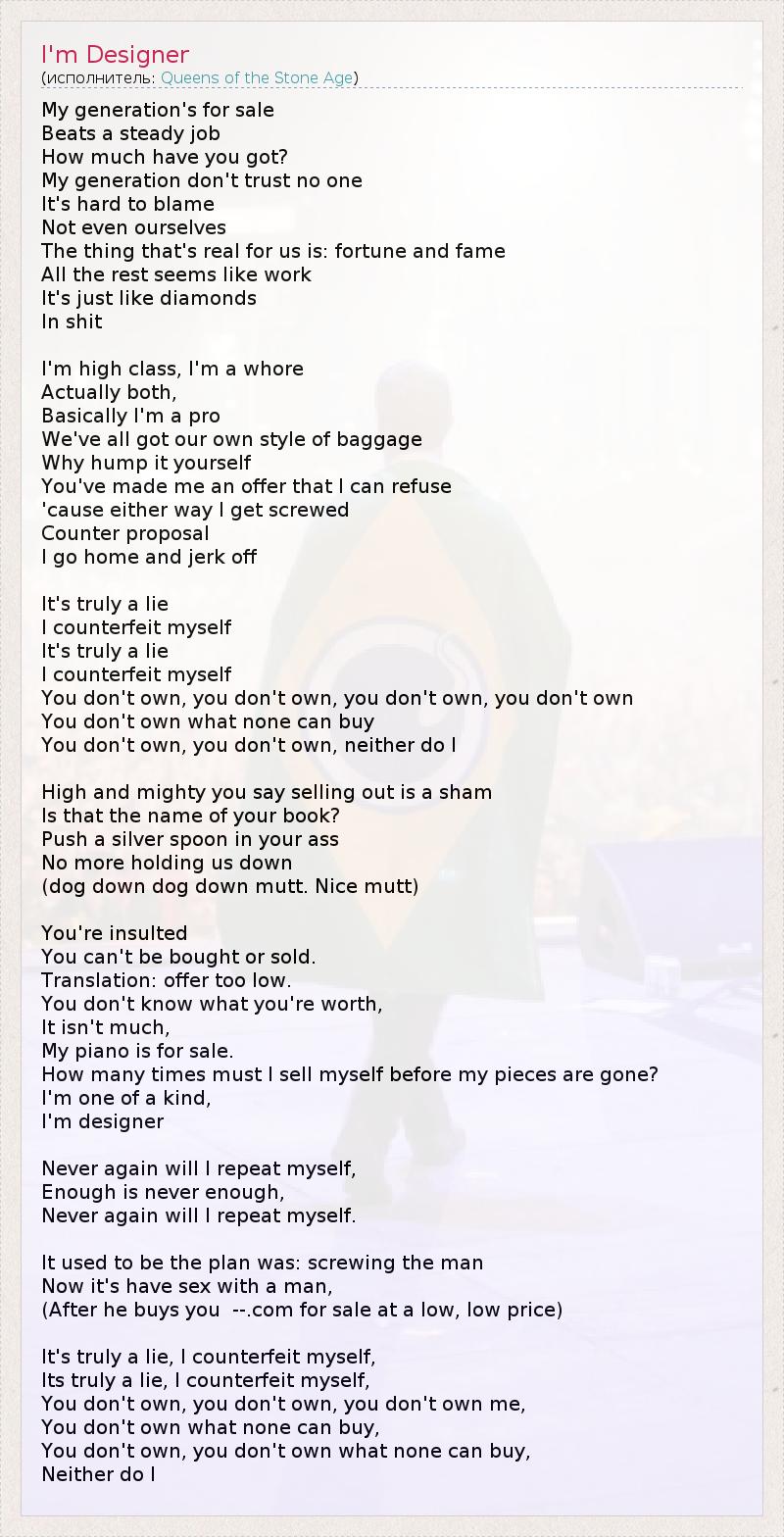 А как ты думаешь, о чем песня "I'm Designer" ?