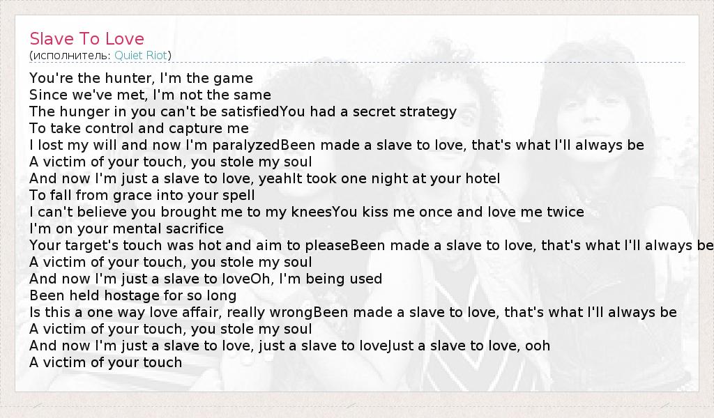 А как ты думаешь, о чем песня "Slave To Love" ?