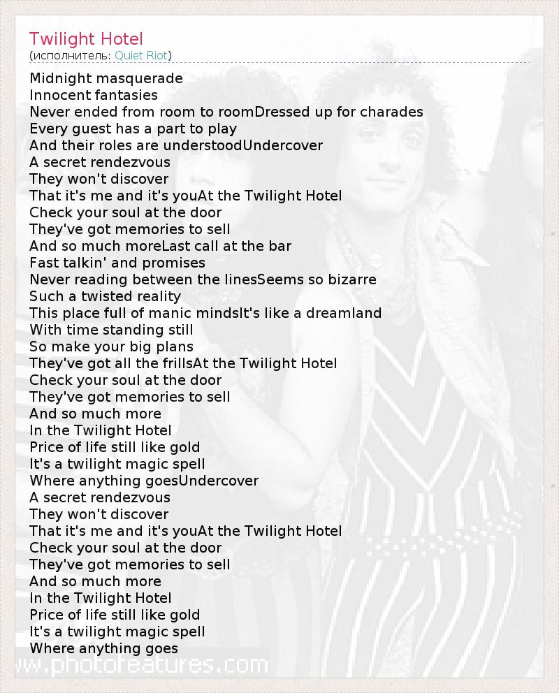 А как ты думаешь, о чем песня "Twilight Hotel" ?