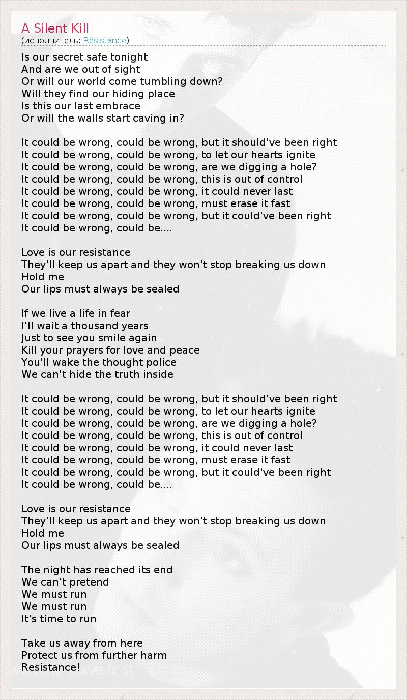А как ты думаешь, о чем песня "A Silent Kill" ?