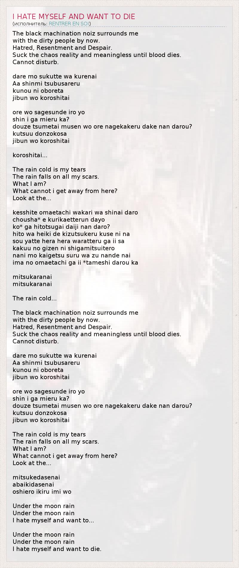 ГлавнаяИсполнителиRENTRER EN SOII HATE MYSELF AND WANT TO DIE