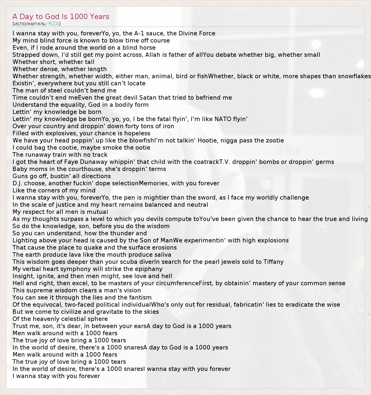 А как ты думаешь, о чем песня "A Day to God Is 1000 Years" ?
