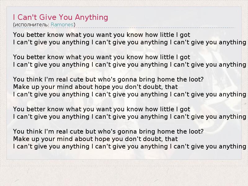 А как ты думаешь, о чем песня "I Can't Give You Anything" ?