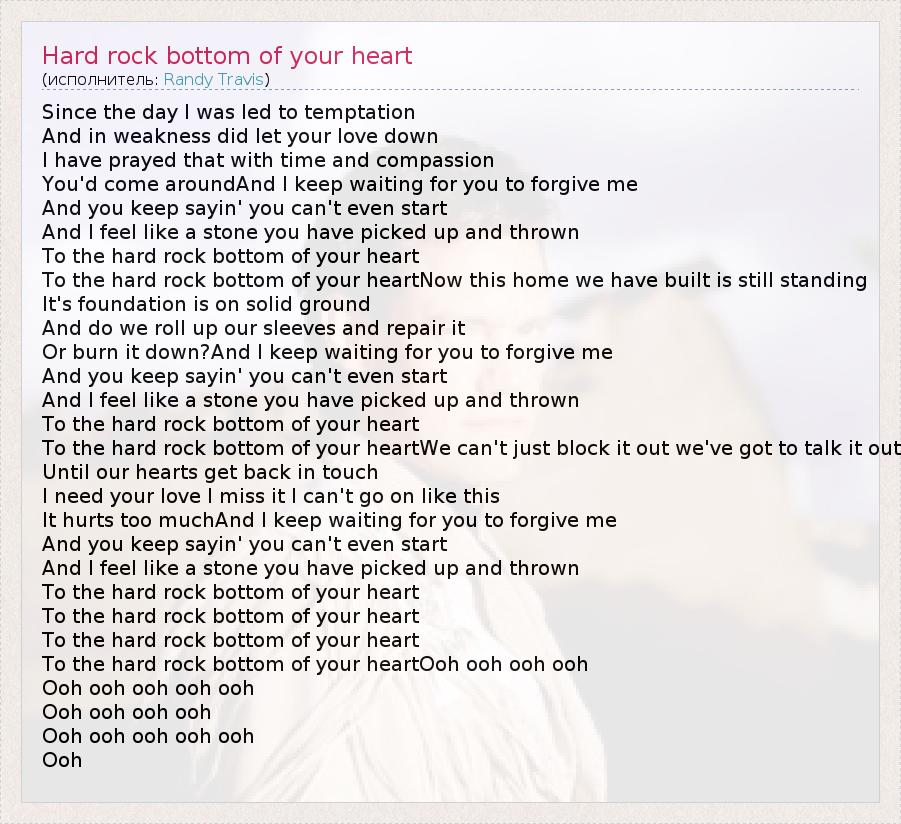 ГлавнаяИсполнителиRandy TravisHard rock bottom of your heart