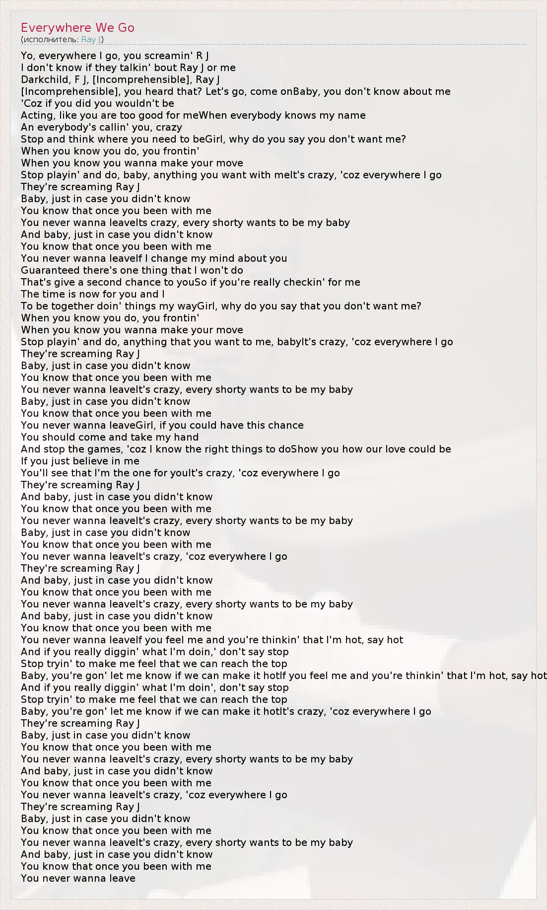 А как ты думаешь, о чем песня "Everywhere We Go" ?