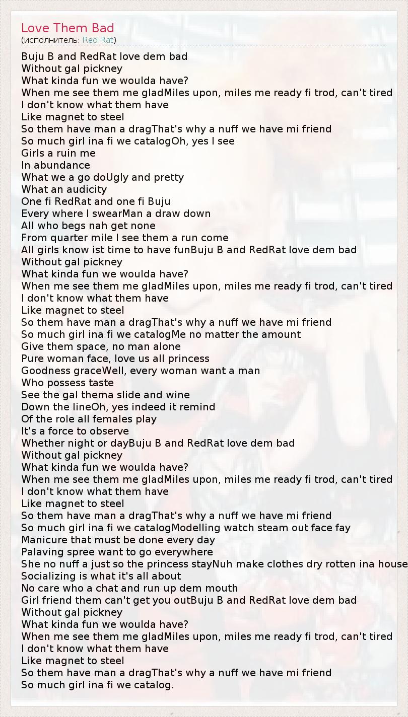 А как ты думаешь, о чем песня "Love Them Bad" ?