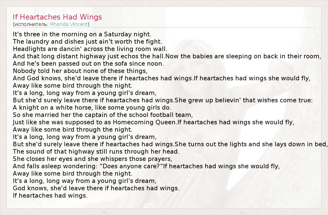 А как ты думаешь, о чем песня "If Heartaches Had Wings" ?