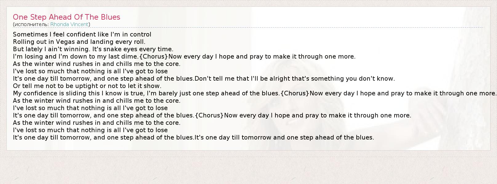 А как ты думаешь, о чем песня "One Step Ahead Of The Blues" ?