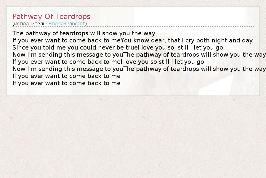 А как ты думаешь, о чем песня "Pathway Of Teardrops" ?