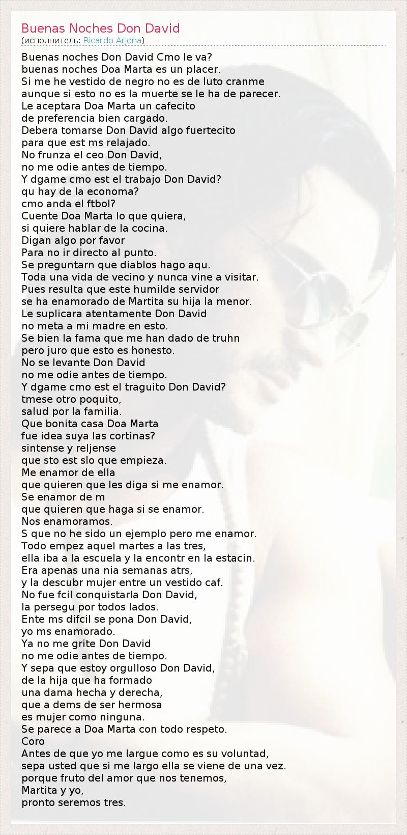 А как ты думаешь, о чем песня "Buenas Noches Don David" ?
