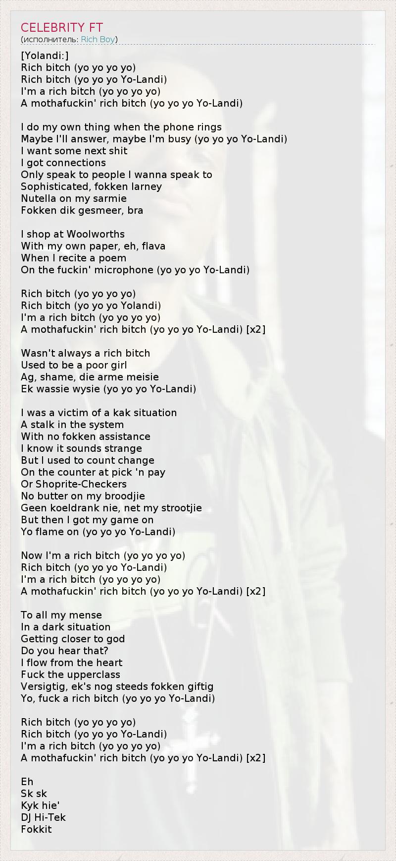 A mothafuckin' rich bitch (yo yo yo Yo-Landi)