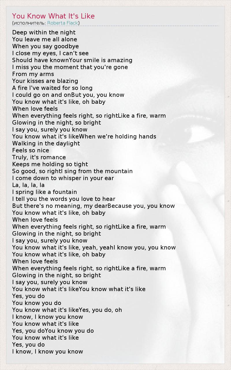 А как ты думаешь, о чем песня "You Know What It's Like" ?