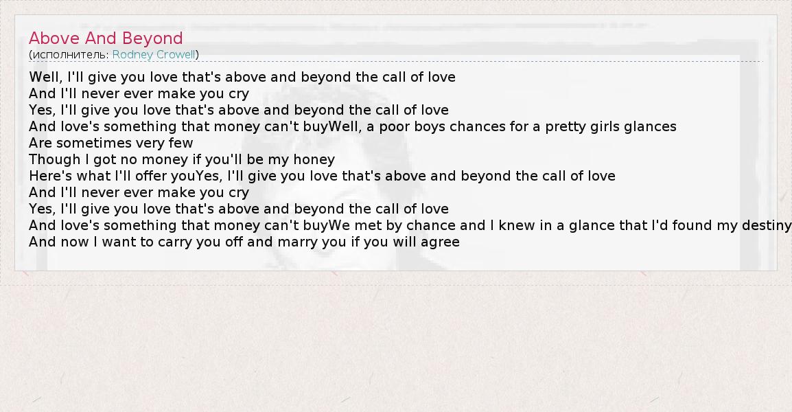 А как ты думаешь, о чем песня "Above And Beyond" ?