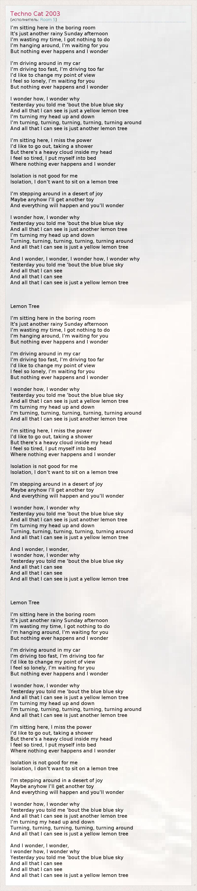 А как ты думаешь, о чем песня "Techno Cat 2003" ?