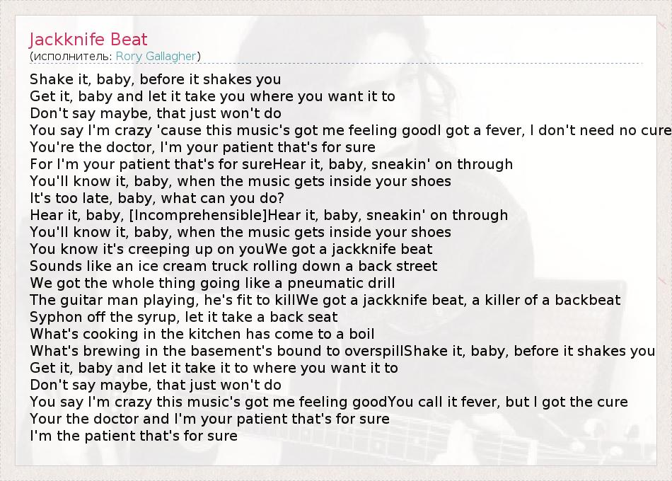 А как ты думаешь, о чем песня "Jackknife Beat" ?
