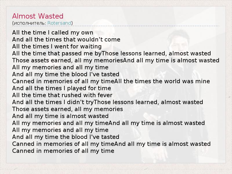 А как ты думаешь, о чем песня "Almost Wasted" ?