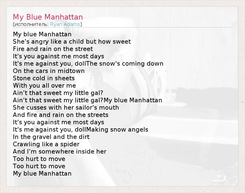 А как ты думаешь, о чем песня "My Blue Manhattan" ?