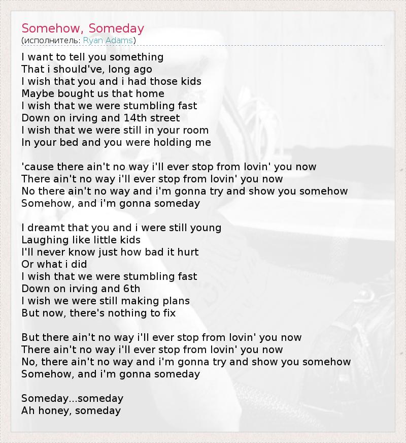 А как ты думаешь, о чем песня "Somehow, Someday" ?