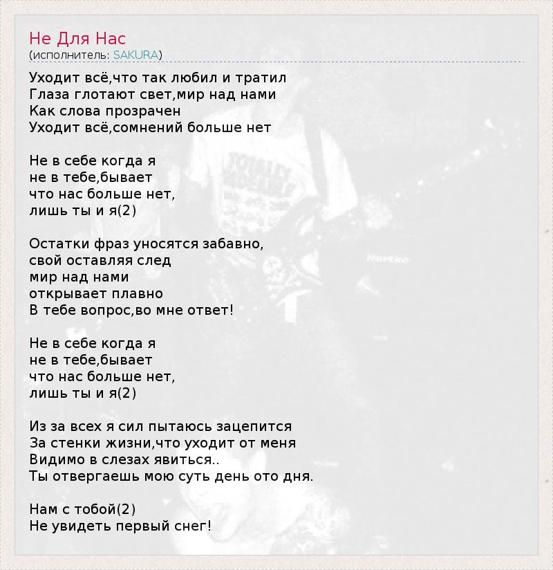 А как ты думаешь, о чем песня "Не Для Нас" ?
