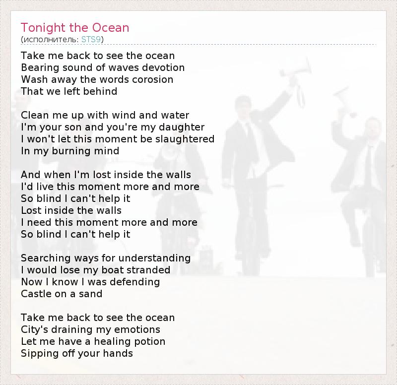 А как ты думаешь, о чем песня "Tonight the Ocean" ?