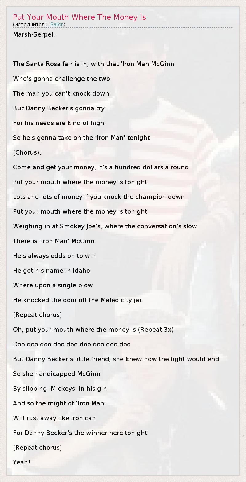 А как ты думаешь, о чем песня "Put Your Mouth Where The Money Is" ?