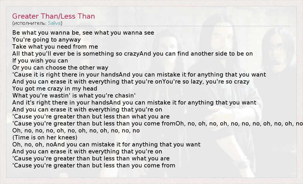 ГлавнаяИсполнителиSalivaGreater Than/Less Than