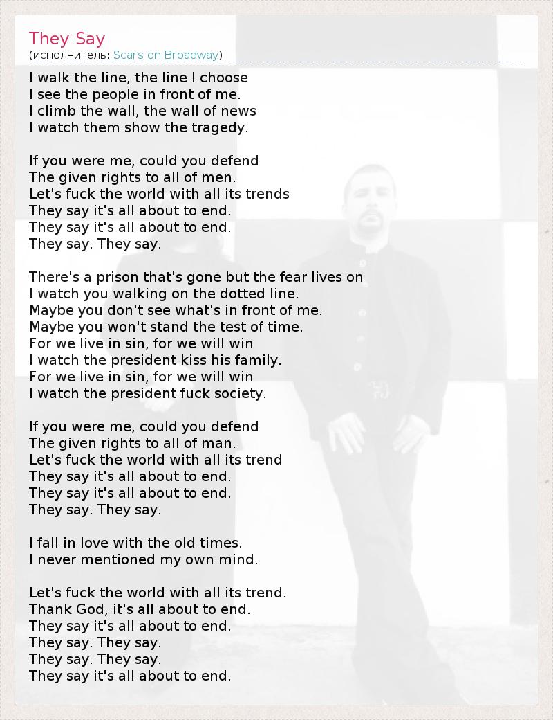Это интересно:Scars on Broadway (или просто SoB или Scars) — американская рок-группа, образованная участниками System of a Down Дароном Малакяном и Джоном Долмаяном. На концертных выступлениях к ним присоединяются Фрэнки Перез, Дэнни Шамоун и Доминик Цифарелли.Дебютный альбом "Scars on Broadway" выпущен 28 июля 2008 года.История... продолжение
