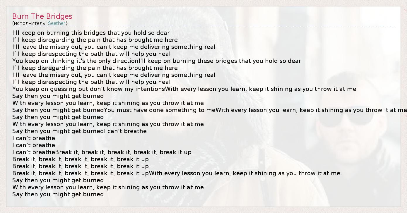 А как ты думаешь, о чем песня "Burn The Bridges" ?