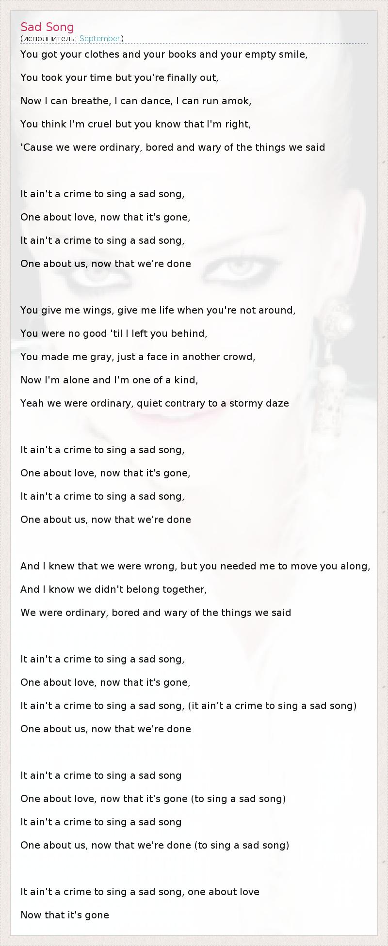 It ain't a crime to sing a sad song