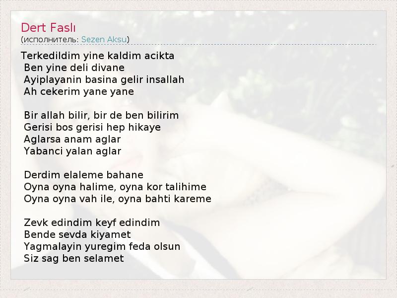 А как ты думаешь, о чем песня "Dert Faslı" ?