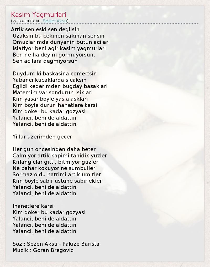А как ты думаешь, о чем песня "Kasim Yagmurlari" ?