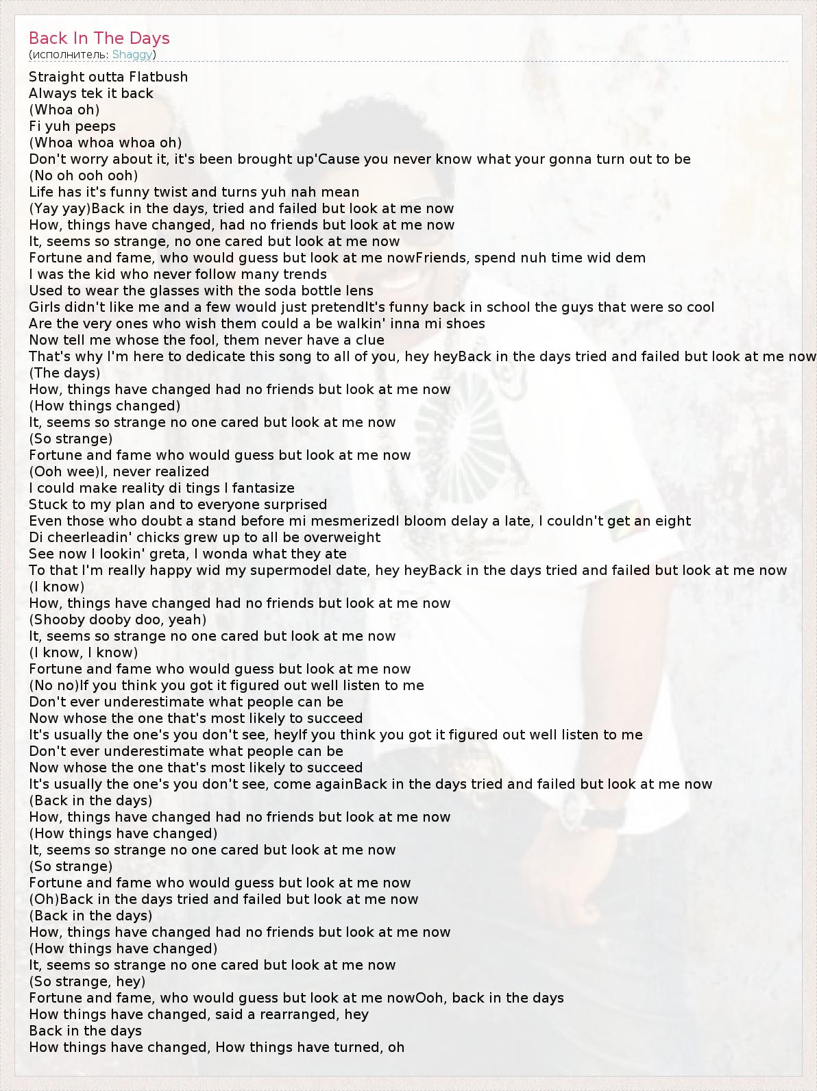 А как ты думаешь, о чем песня "Back In The Days" ?