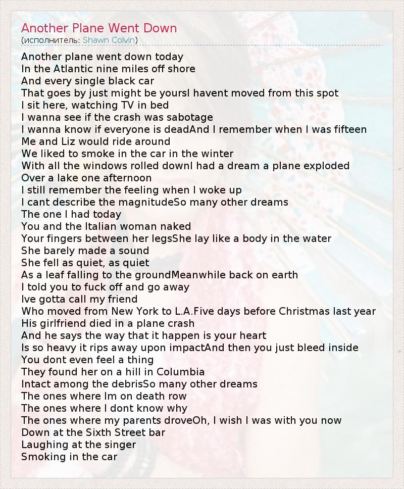 А как ты думаешь, о чем песня "Another Plane Went Down" ?