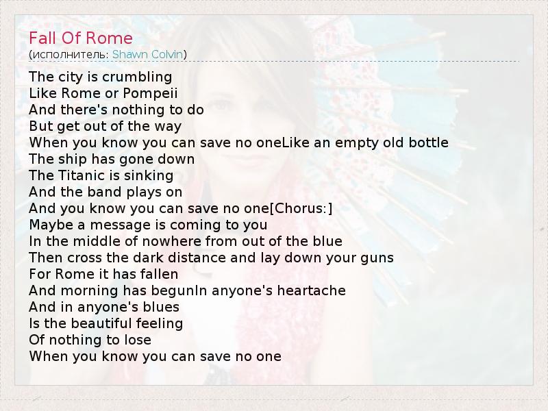 А как ты думаешь, о чем песня "Fall Of Rome" ?