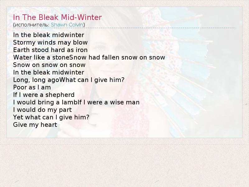 А как ты думаешь, о чем песня "In The Bleak Mid-Winter" ?