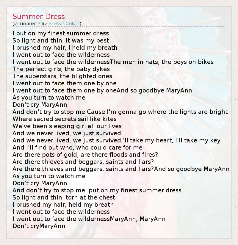 А как ты думаешь, о чем песня "Summer Dress" ?
