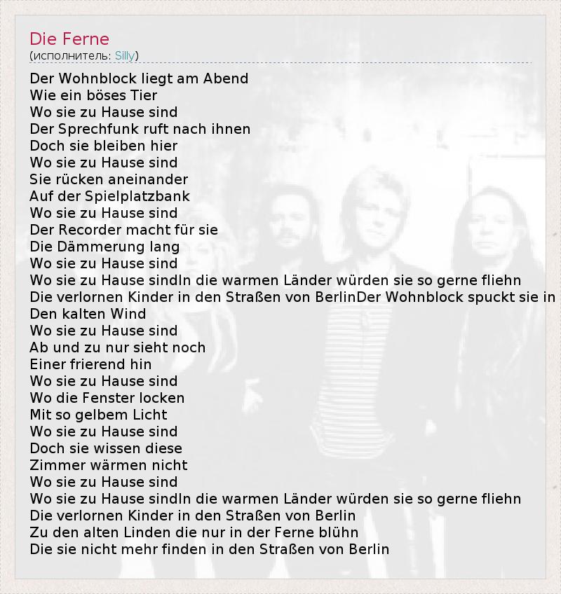 А как ты думаешь, о чем песня "Die Ferne" ?