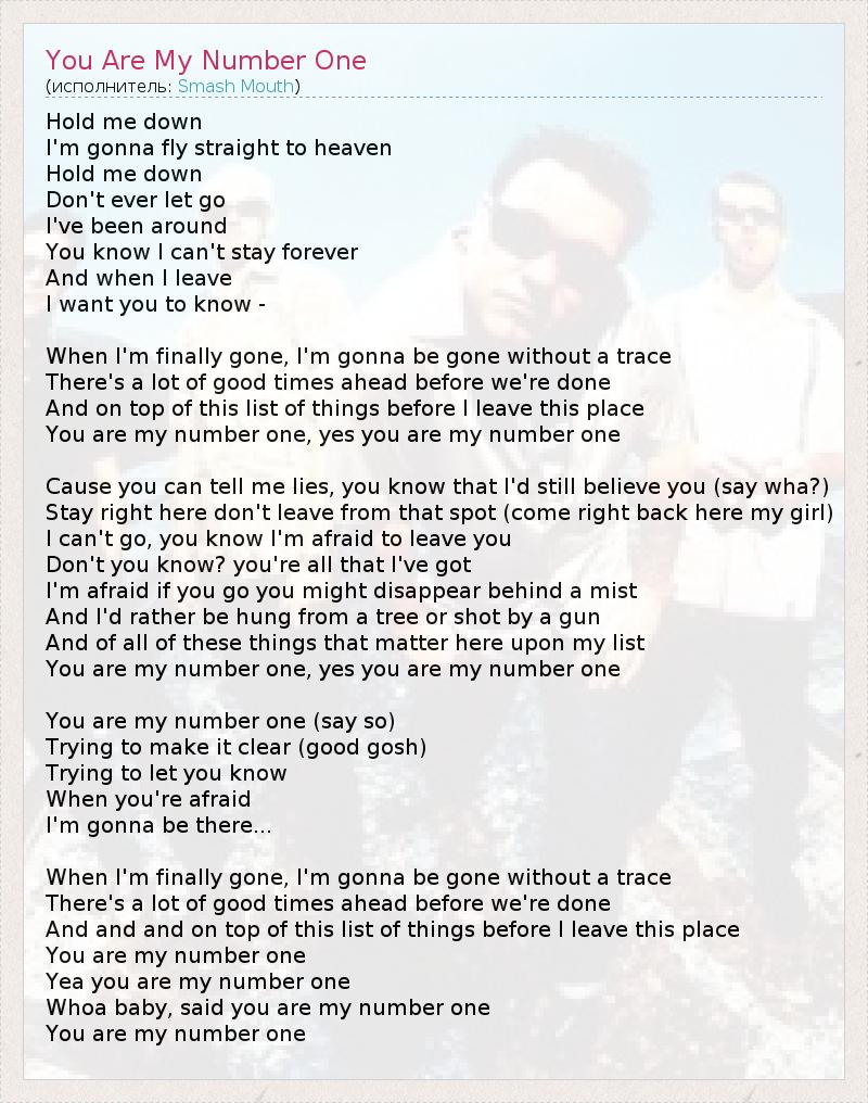 А как ты думаешь, о чем песня "You Are My Number One" ?