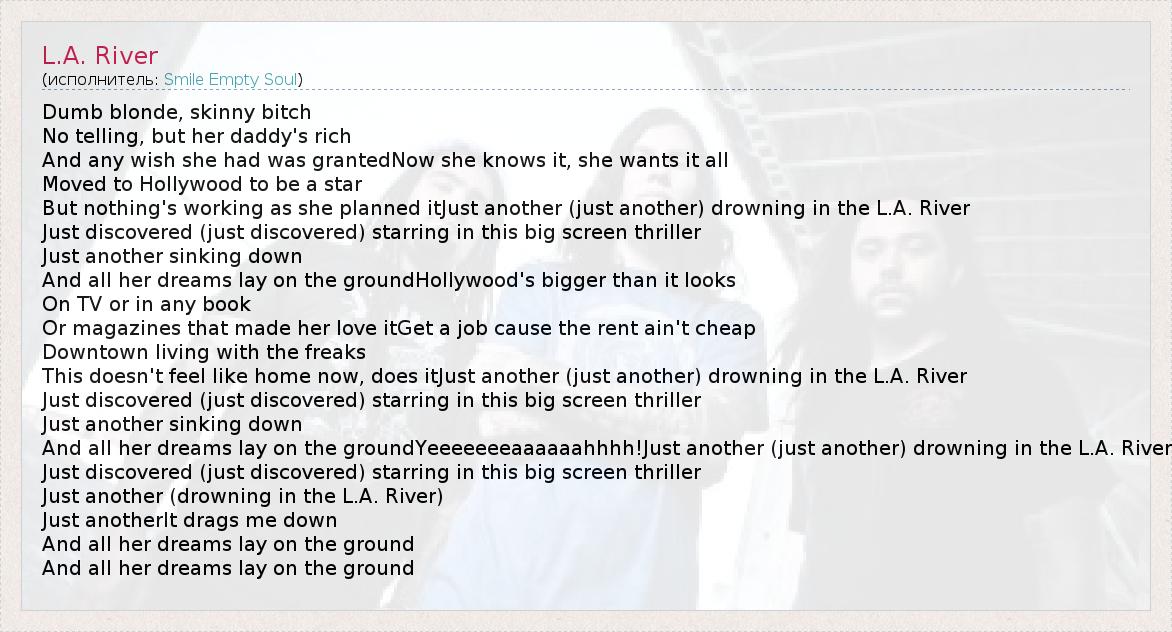 And all her dreams lay on the groundYeeeeeeeaaaaaahhhh!Just another (just another) drowning in the L.A. River