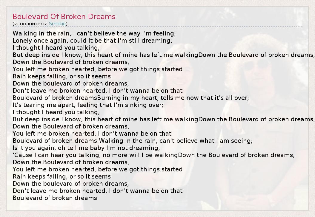 ГлавнаяИсполнителиSmokieBoulevard Of Broken Dreams