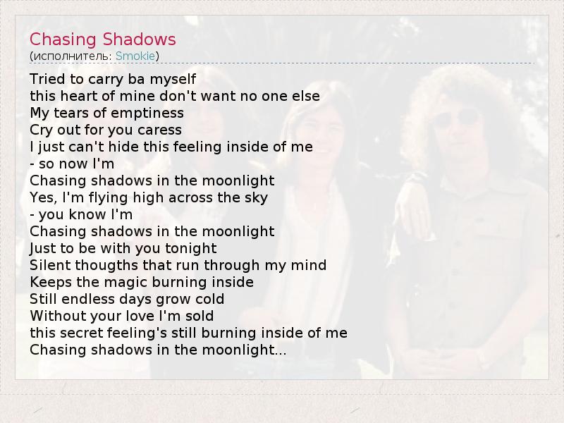 А как ты думаешь, о чем песня "Chasing Shadows" ?