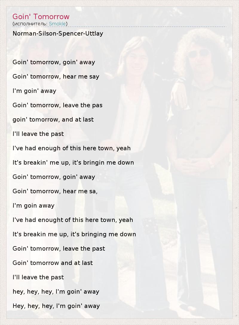 А как ты думаешь, о чем песня "Goin' Tomorrow" ?