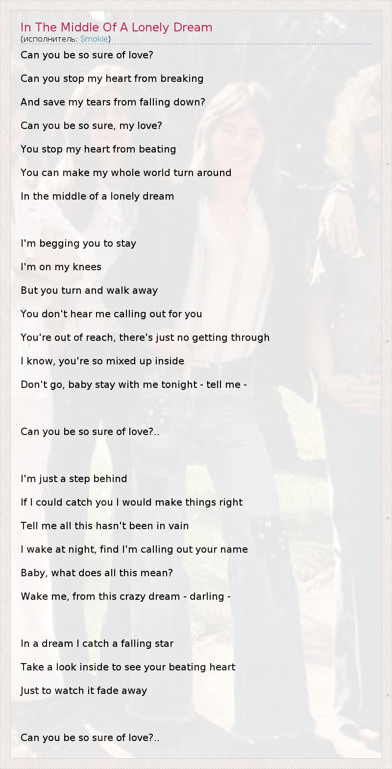 ГлавнаяИсполнителиSmokieIn The Middle Of A Lonely Dream