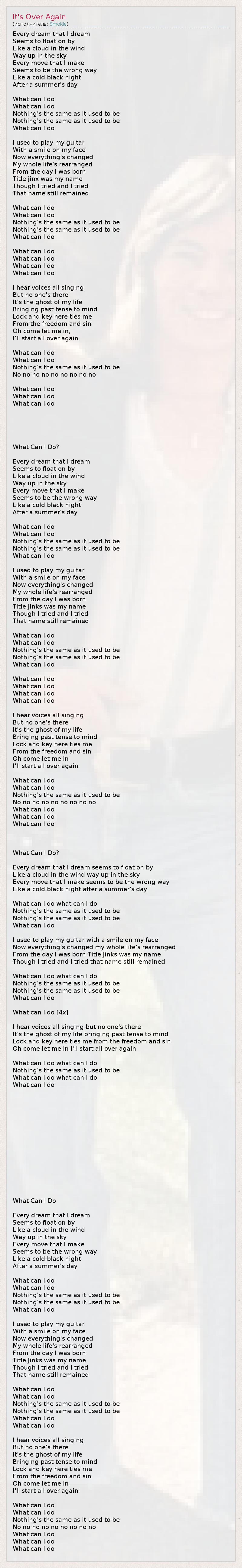 А как ты думаешь, о чем песня "It's Over Again" ?